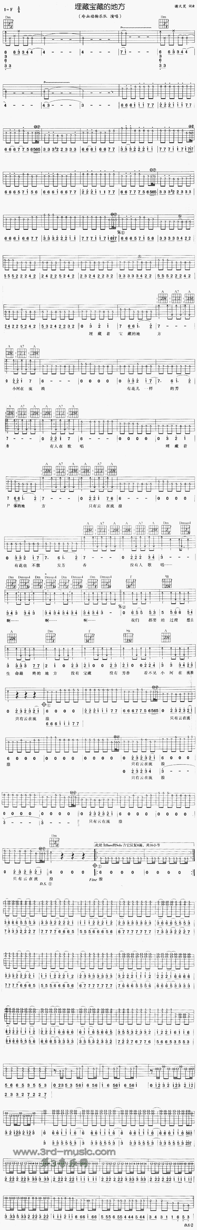 [吉他谱]埋藏宝藏的地方 冷血动物