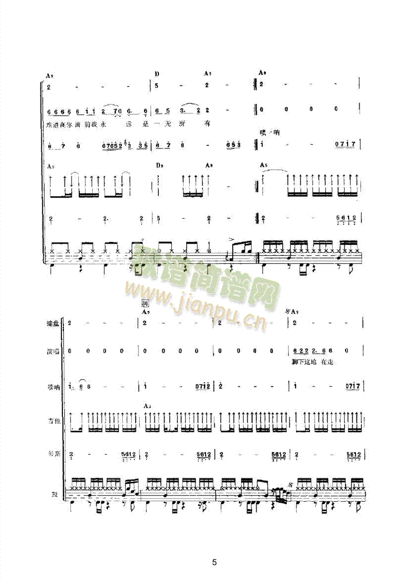[其他乐谱]别怕我伤心 乐队类 电声乐队 李宗盛