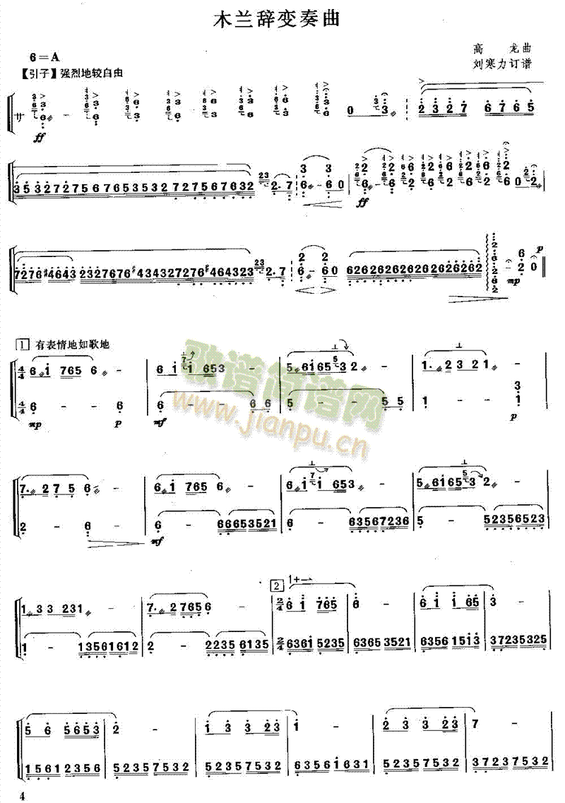 [其他乐谱]木兰辞变奏曲 [简谱版](独奏共5张) 扬琴演奏曲谱
