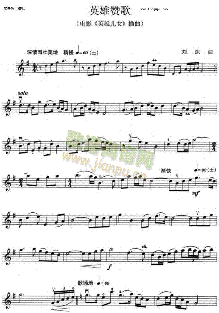 [其他乐谱]英雄赞歌《英雄儿女》插曲 未知