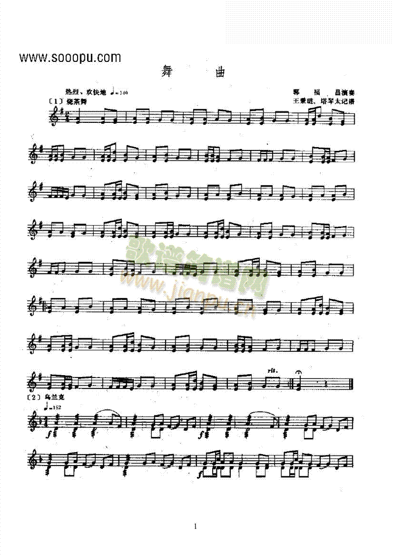 [其他乐谱]舞曲—东布尔 民乐类 其他乐器 郭福昌演奏