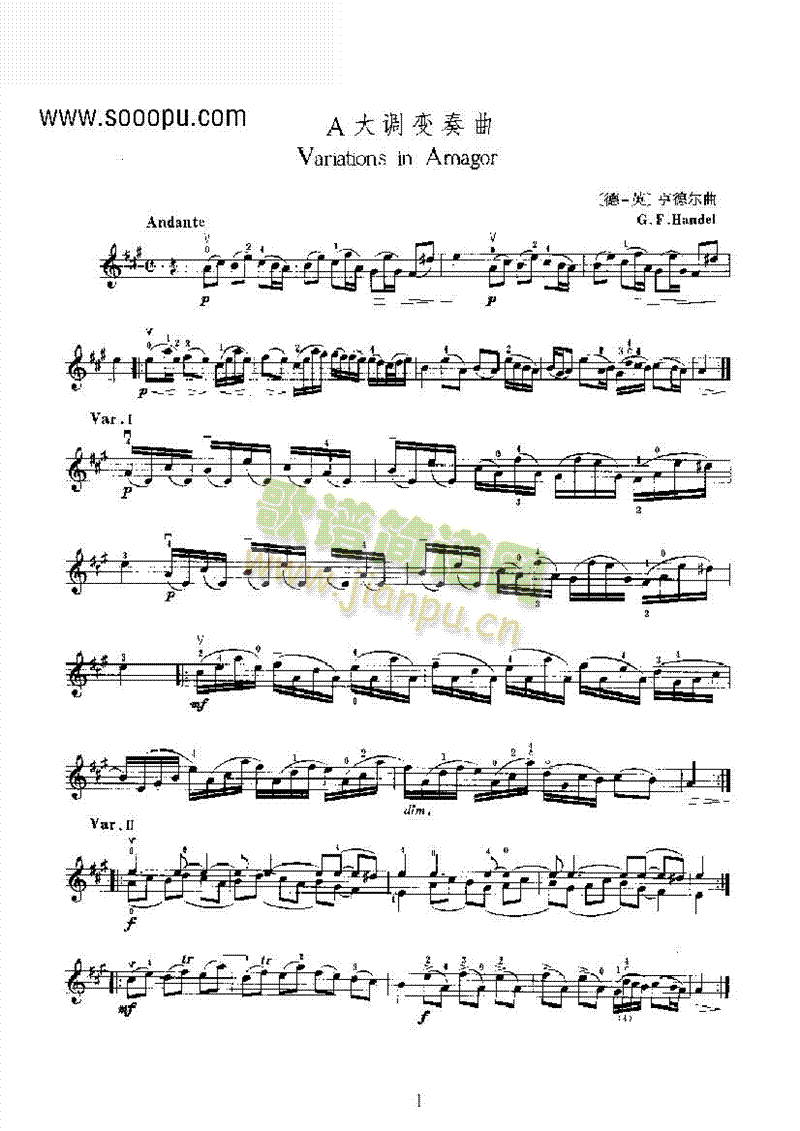 [其他乐谱]A大调变奏曲 弦乐类 小提琴 亨德尔