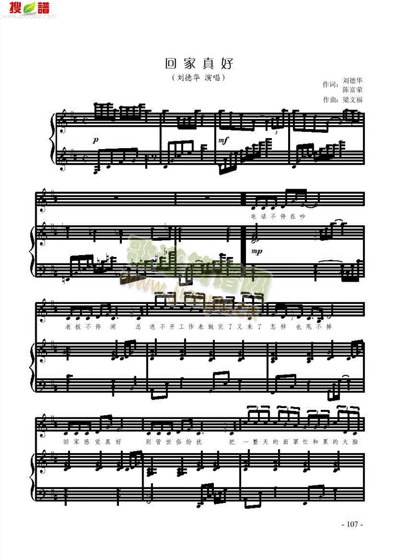 [其他乐谱]回家真好 歌曲类 钢琴伴奏谱 刘德华
