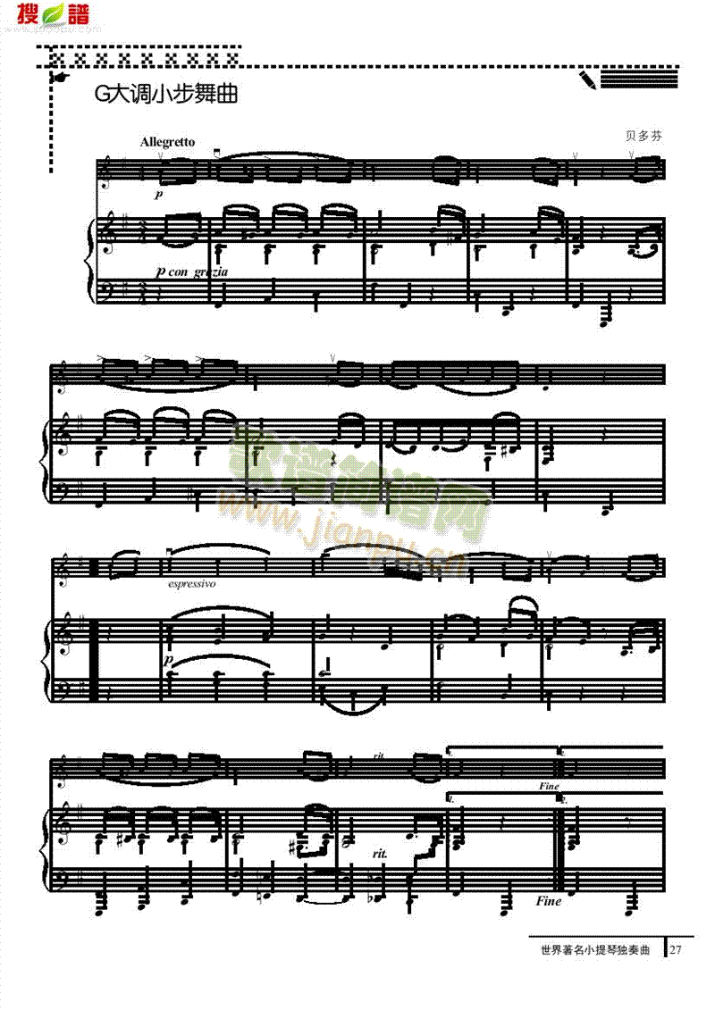 [其他乐谱]G大调小步舞曲-钢伴谱 弦乐类 小提琴 贝多芬