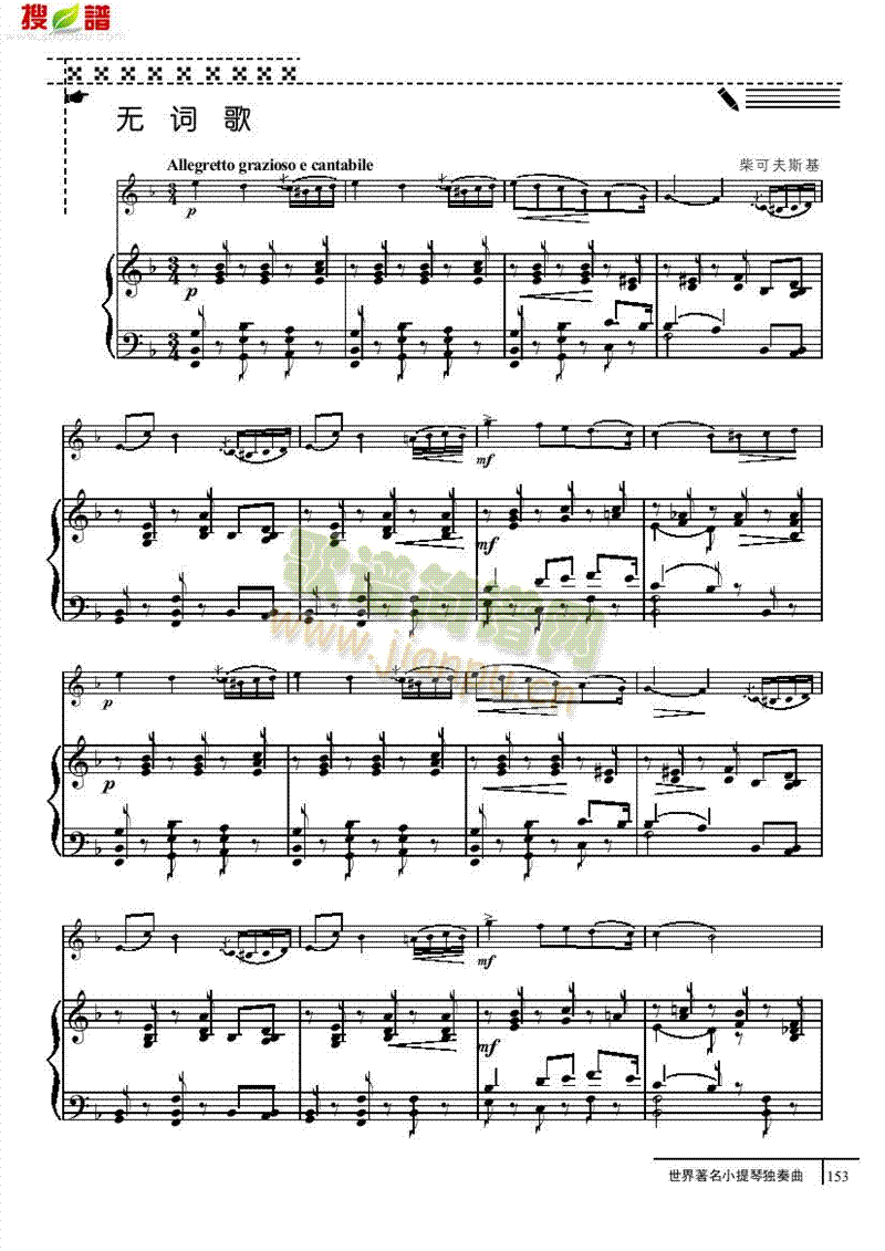 [其他乐谱]无词歌-钢伴谱 弦乐类 小提琴 柴科夫斯基