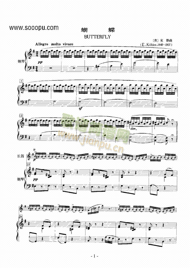 [其他乐谱]蝴蝶 管乐类 长笛 克勒