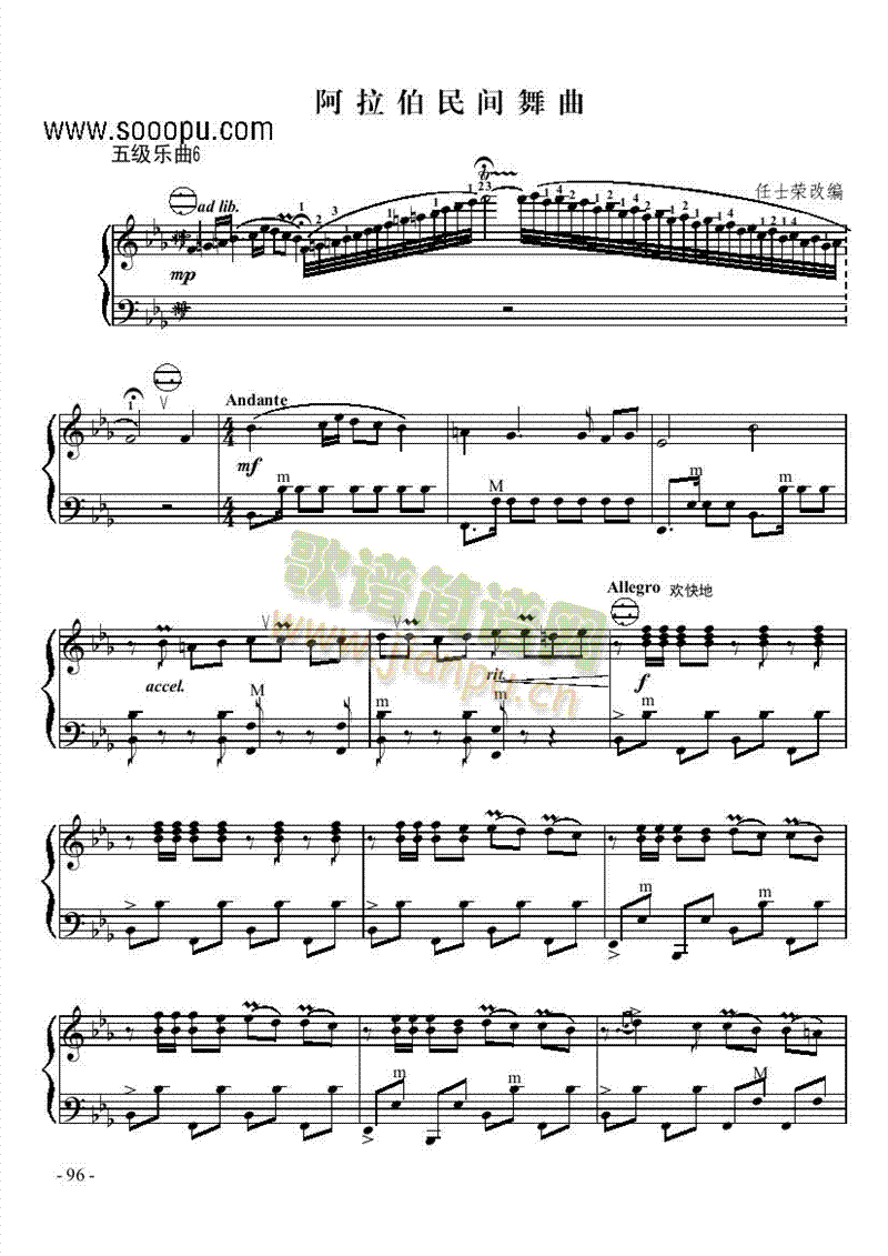 [其他乐谱]五级乐曲《阿拉伯民间舞曲》 键盘类 手风琴 考级乐曲