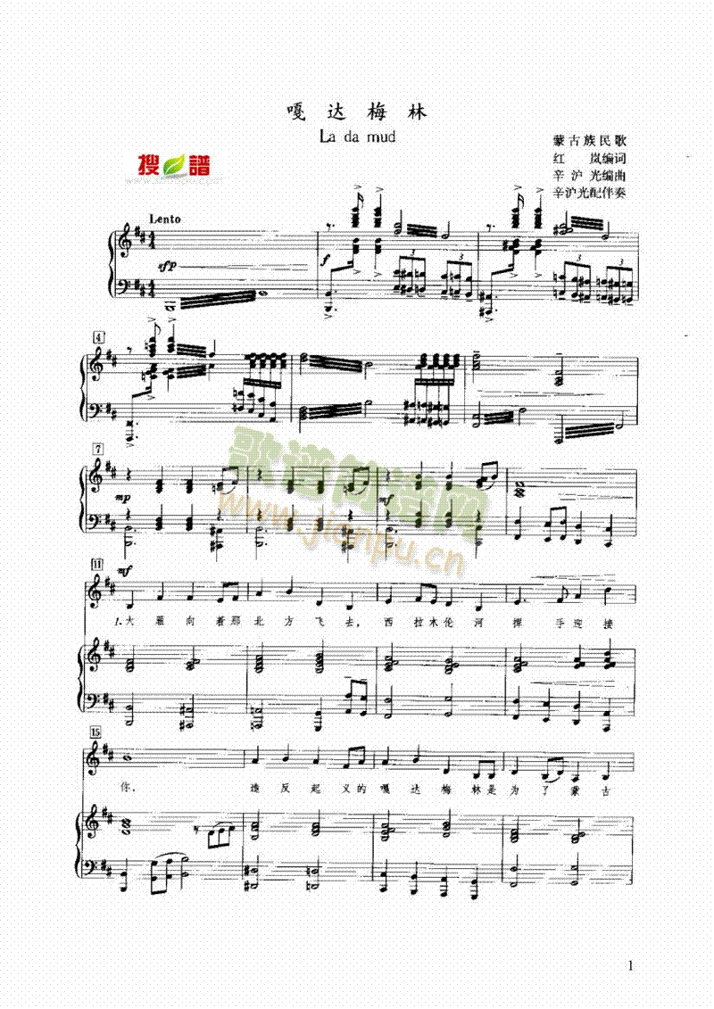 [钢琴谱]嘎达梅林(钢琴伴奏) 男中音