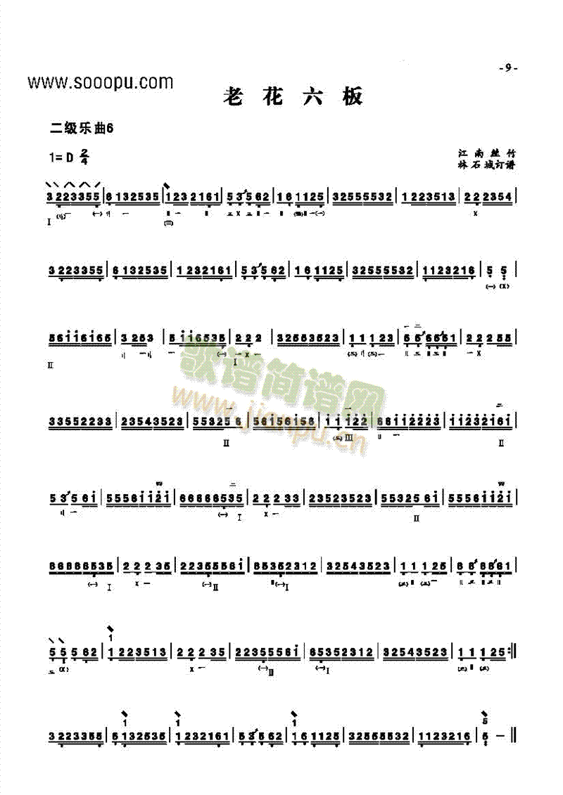 [其他乐谱]二级乐曲《老花六板》 民乐类 琵琶 考级乐曲