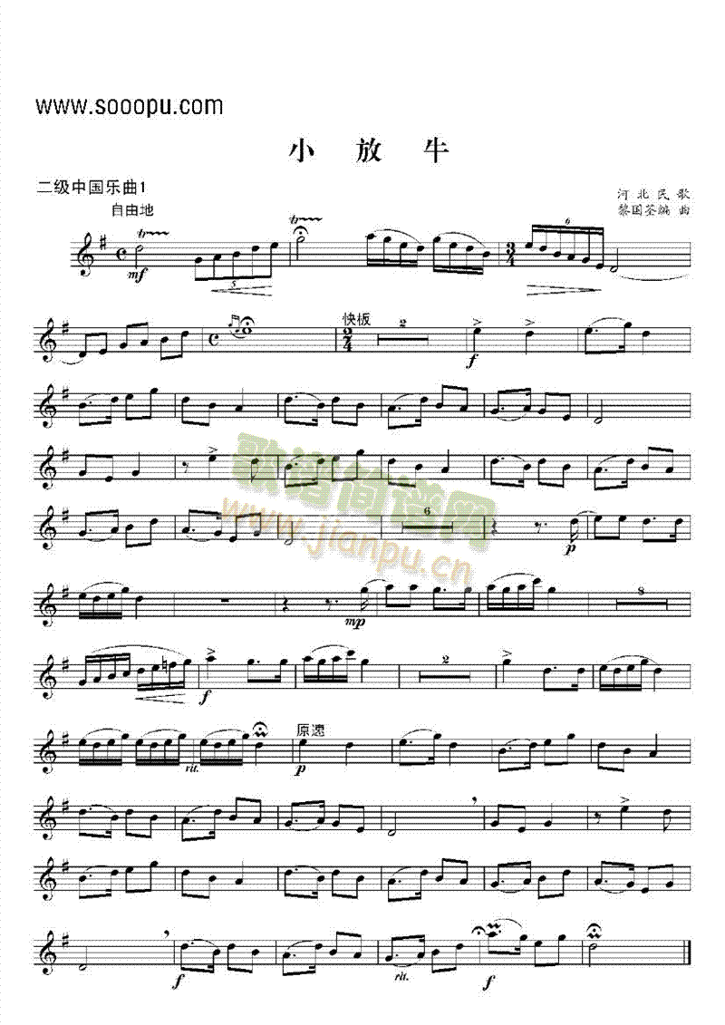 [其他乐谱]二级中国乐曲《小放牛》 管乐类 单簧管 考级曲