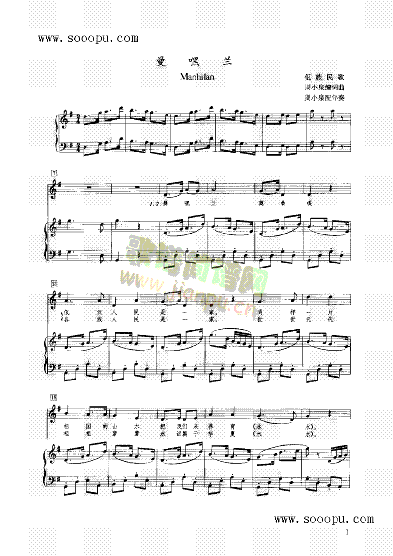 [其他乐谱]曼嘿兰 键盘类 钢琴 民歌