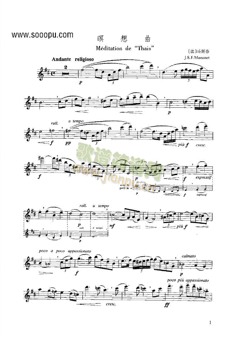 [其他乐谱]瞑想曲 管乐类 长笛 [法]马斯奈