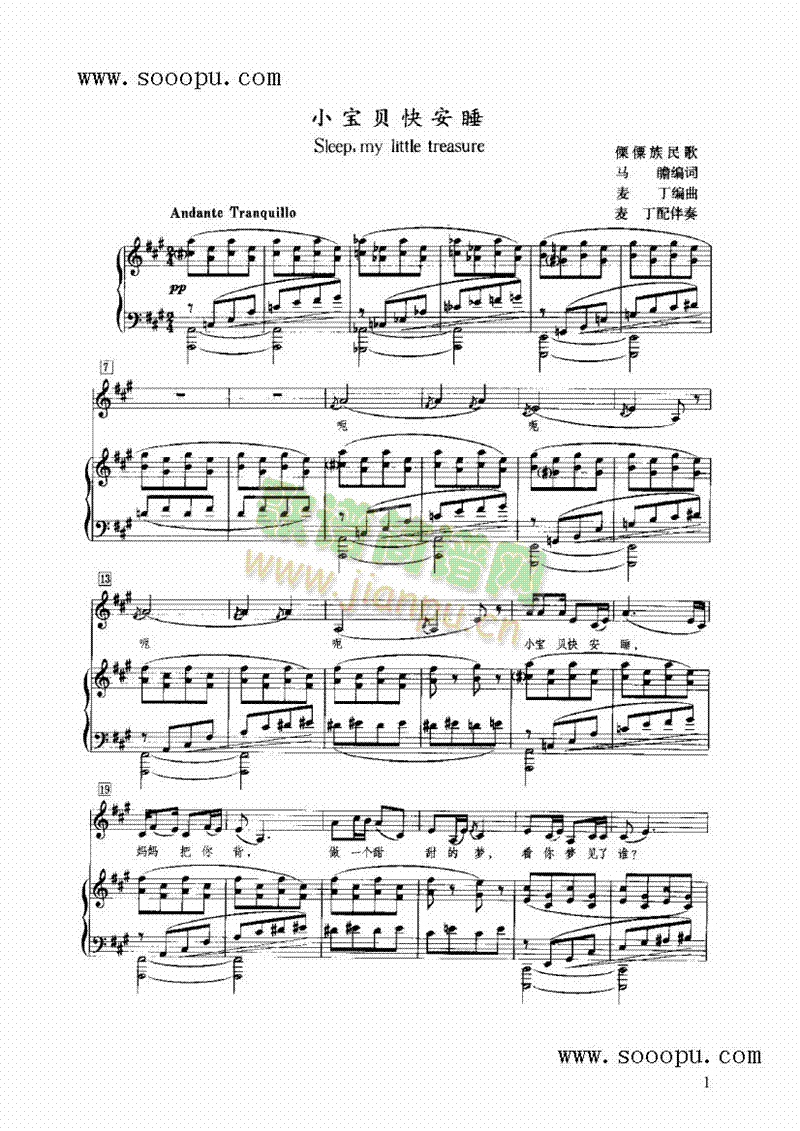 [其他乐谱]小宝贝快安睡 键盘类 钢琴 民歌