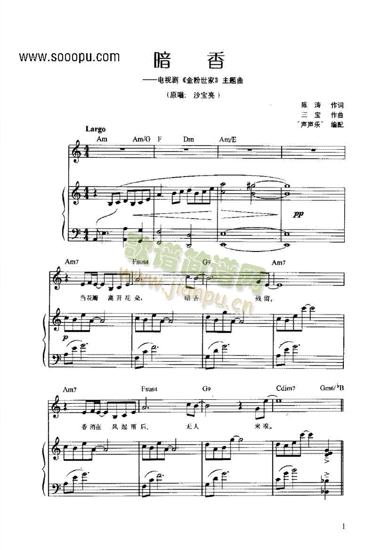 [其他乐谱]暗香 键盘类 钢琴 沙宝亮