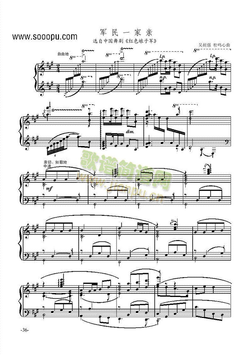 [其他乐谱]军民一家亲—舞剧《红色娘子军》 键盘类 钢琴 吴祖强、杜鸣心