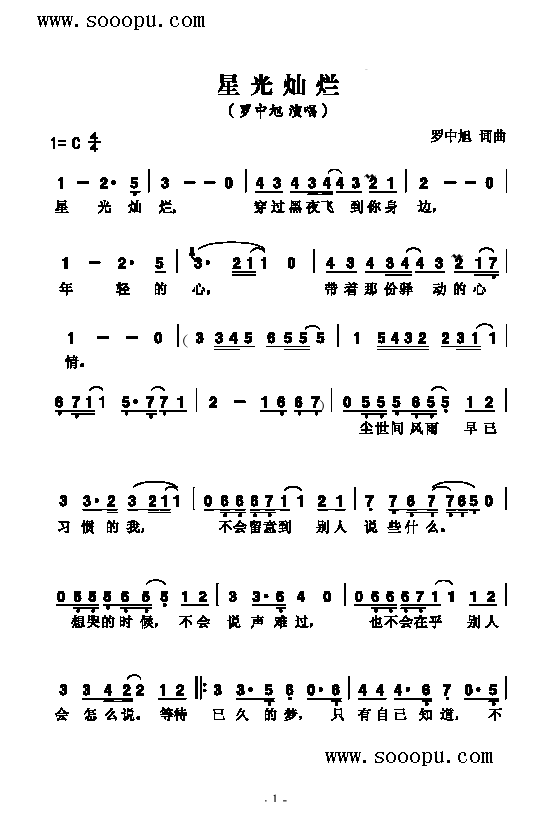 [其他乐谱]星光灿烂 歌曲类 简谱 罗中旭