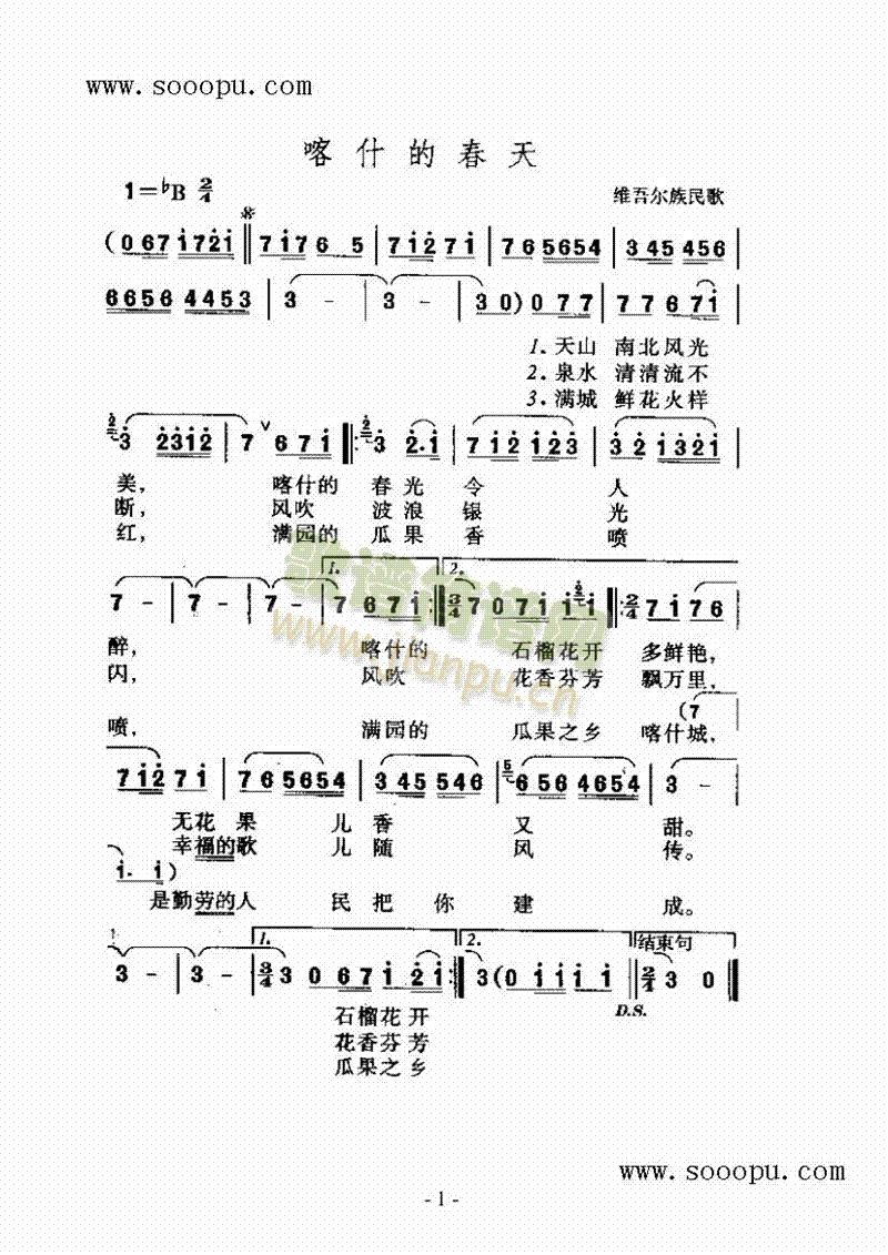 [其他乐谱]喀什的春天 歌曲类 简谱 民歌