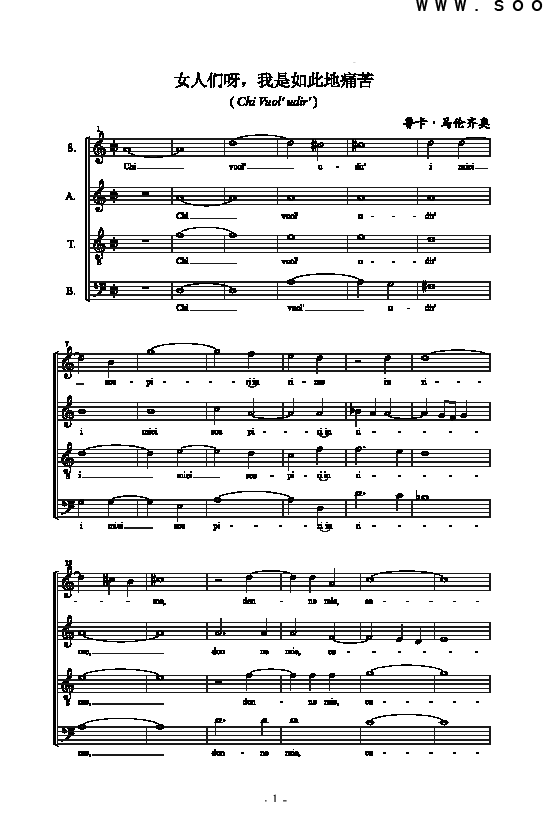 [其他乐谱]女人们呀,我是如此地痛苦 歌曲类 合唱谱 鲁卡·马伦齐奥