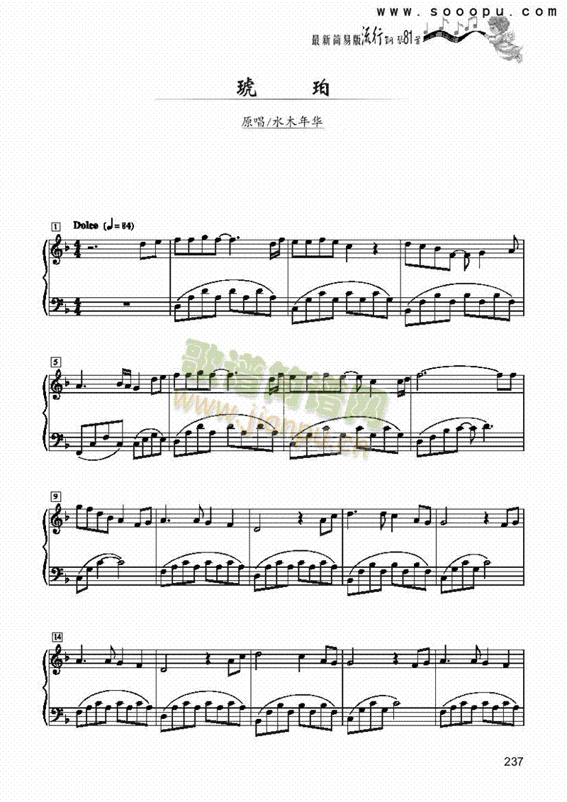 [其他乐谱]琥珀-简易版 键盘类 钢琴 水木年华