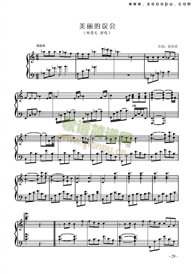 [钢琴谱]美丽的误会 郑秀文