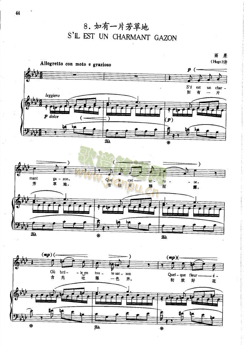 [其他乐谱]如有一片芳草地(钢伴) 歌曲类 钢琴伴奏谱 李斯特