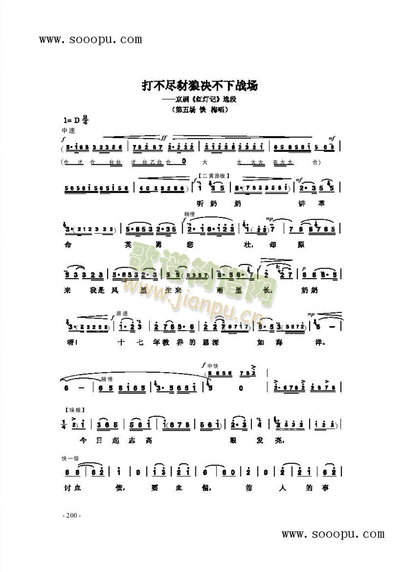 [其他乐谱](现代戏)打不尽豺狼决不下战场(红灯记) 其他类 戏曲谱 女青年唱段