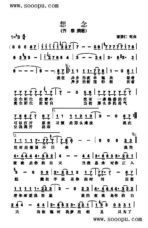 [其他乐谱]想念 歌曲类 简谱 齐秦