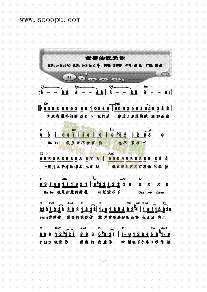 [其他乐谱]甜蜜地,我爱你-弹唱 吉他类 流行 李宇春