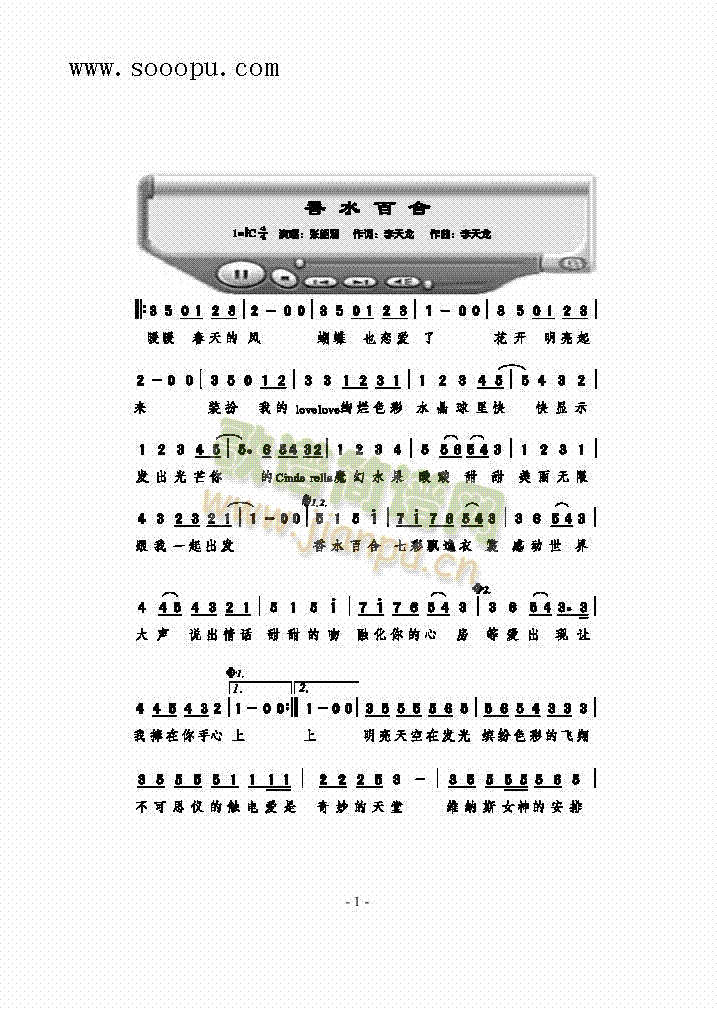 > 香水百合 歌曲类 简谱