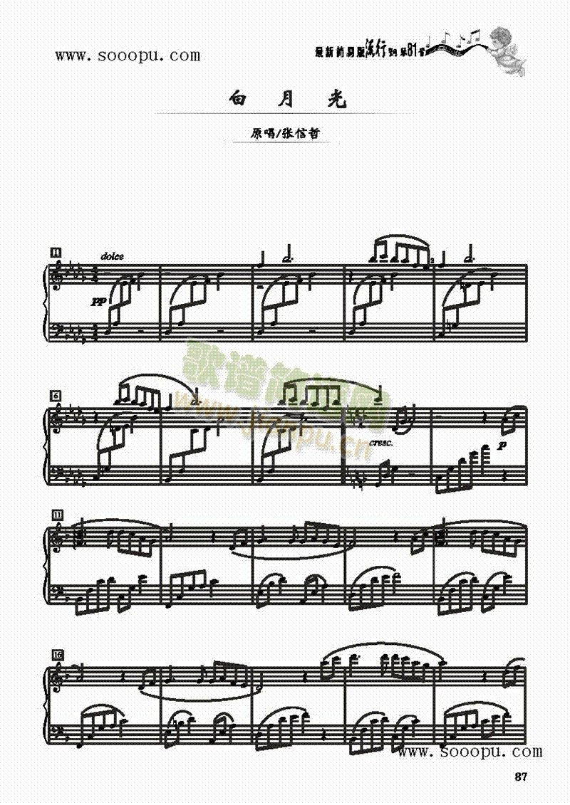 [其他乐谱]白月光-简易版 键盘类 钢琴 张信哲