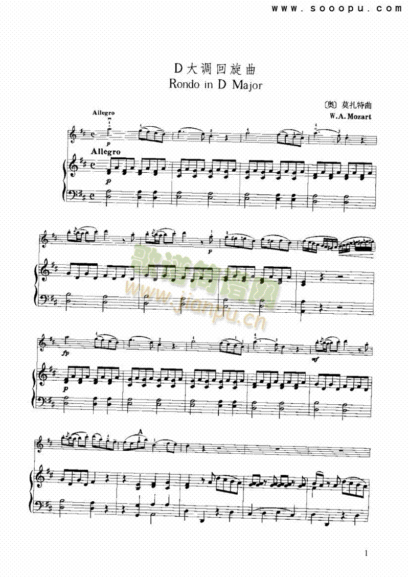 [其他乐谱]D大调回旋曲 弦乐类 小提琴 莫扎特