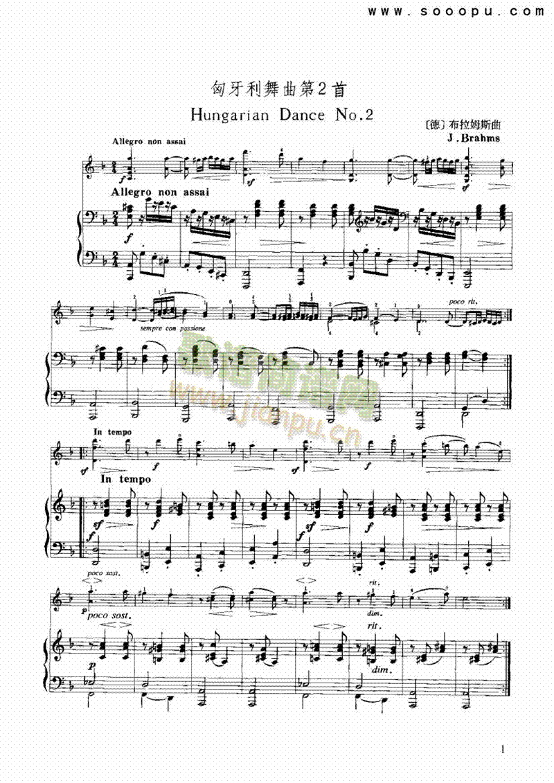 [其他乐谱]匈牙利舞曲第2首 弦乐类 小提琴 布拉姆斯