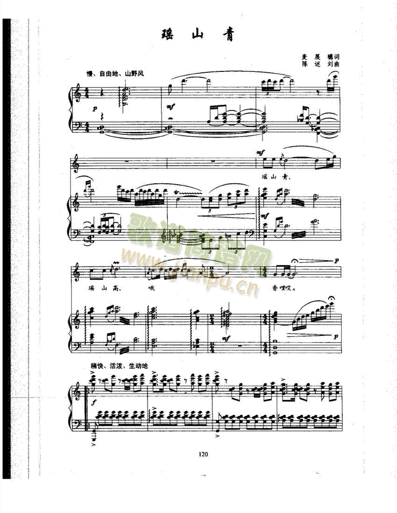 [其他乐谱]瑶山青 歌曲类 钢琴伴奏谱 陈述刘