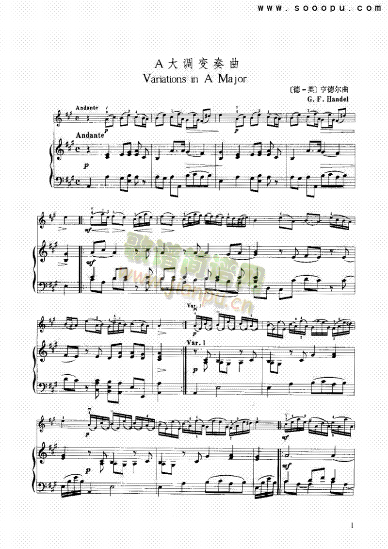 [其他乐谱]A大调变奏曲 弦乐类 小提琴 亨德尔
