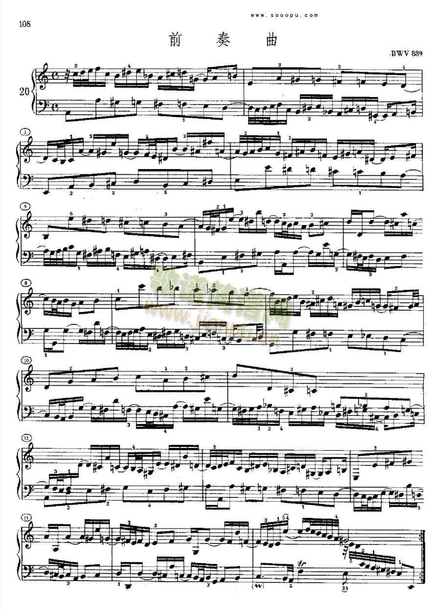 巴赫平均律曲集第二册第20首 键盘类 钢琴