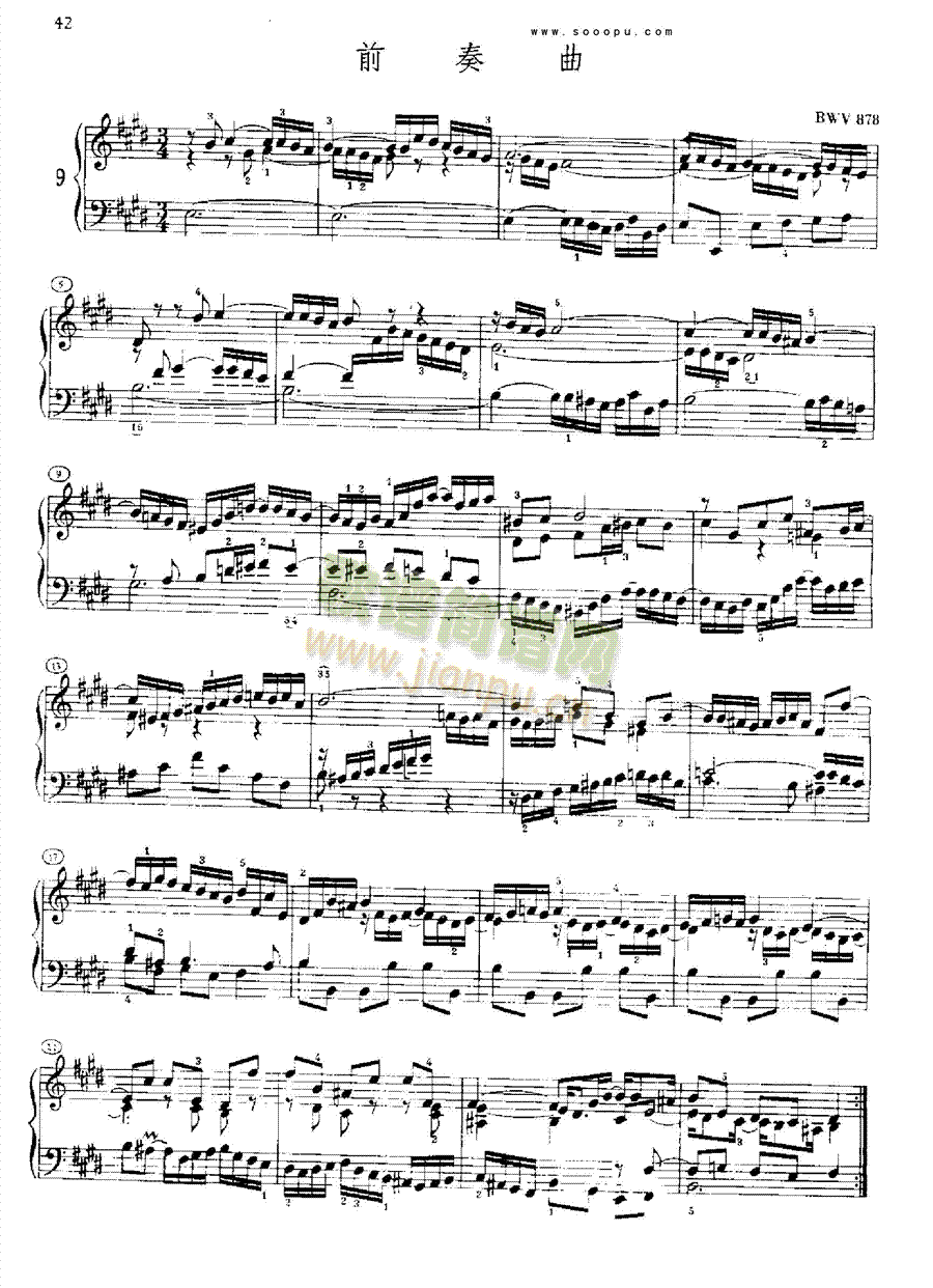 巴赫平均律曲集第二册第9首 键盘类 钢琴