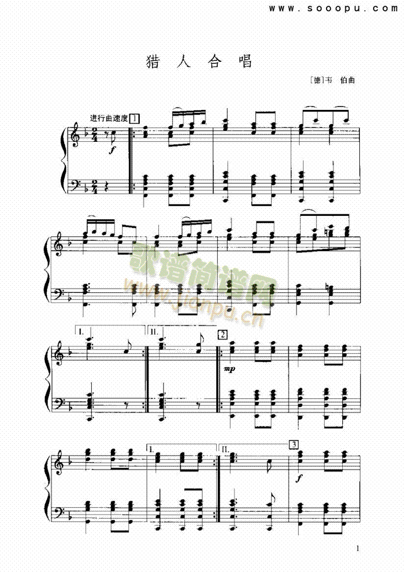 [钢琴谱](德)韦柏歌剧“自由射手”选曲:猎人合唱 未知