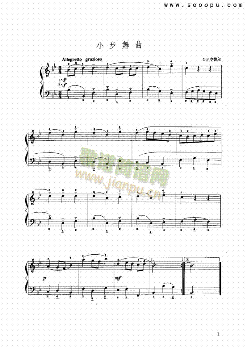 [其他乐谱]小步舞曲1 键盘类 手风琴 G.F.亨德尔