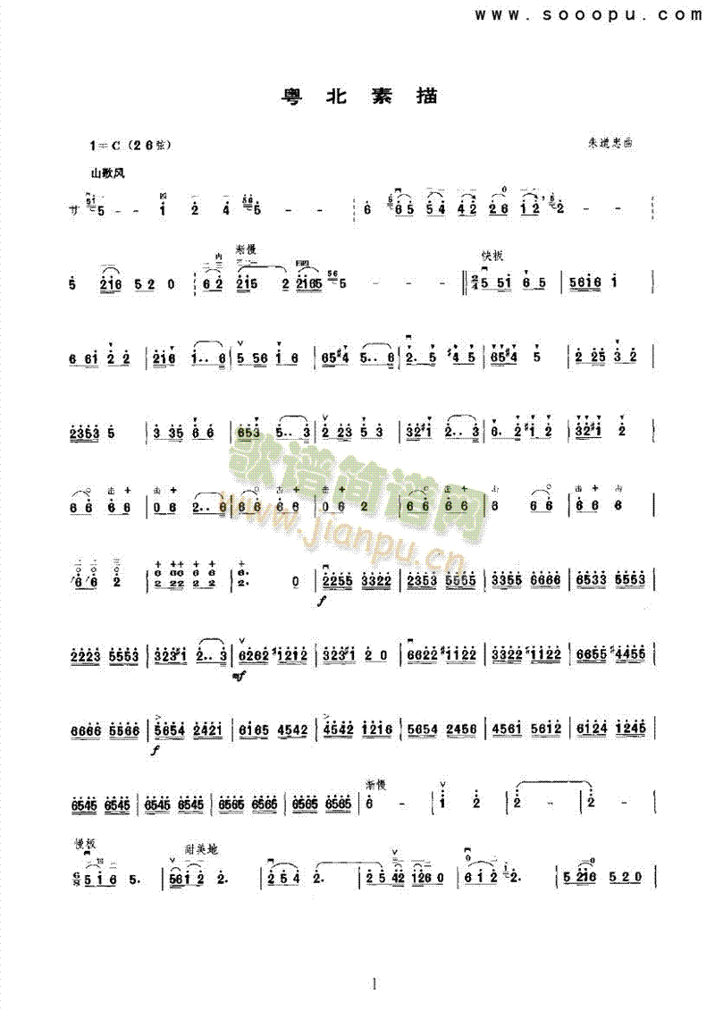 [其他乐谱]粤北素描 民乐类 二胡 朱道忠