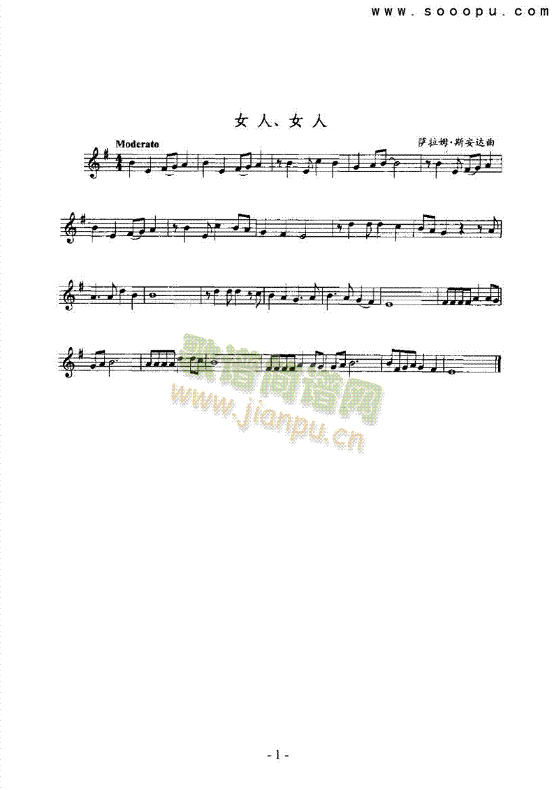 [其他乐谱]女人、女人 管乐类 萨克斯管 萨拉姆·斯安达
