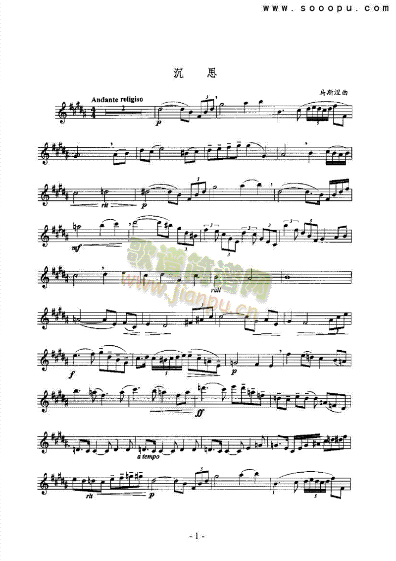 [其他乐谱]沉思 管乐类 萨克斯管 马斯涅