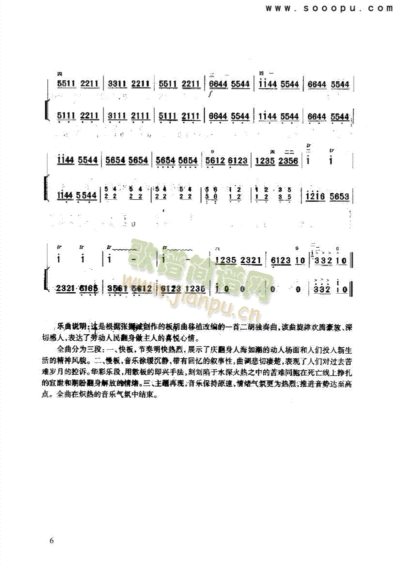 [其他乐谱]翻身歌 民乐类 二胡 王国潼改编