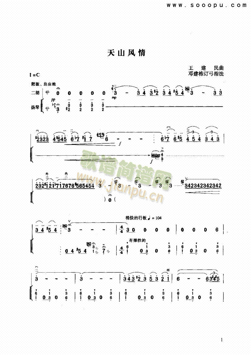 [其他乐谱]天山风情 民乐类 二胡 王建民曲