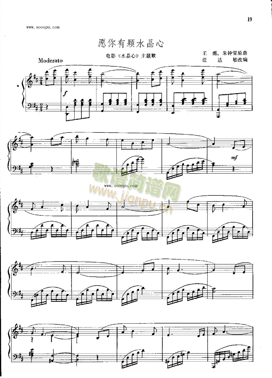 [其他乐谱]愿你有颗水晶心 键盘类 钢琴 王酩、朱钟堂原曲、任达敏改编