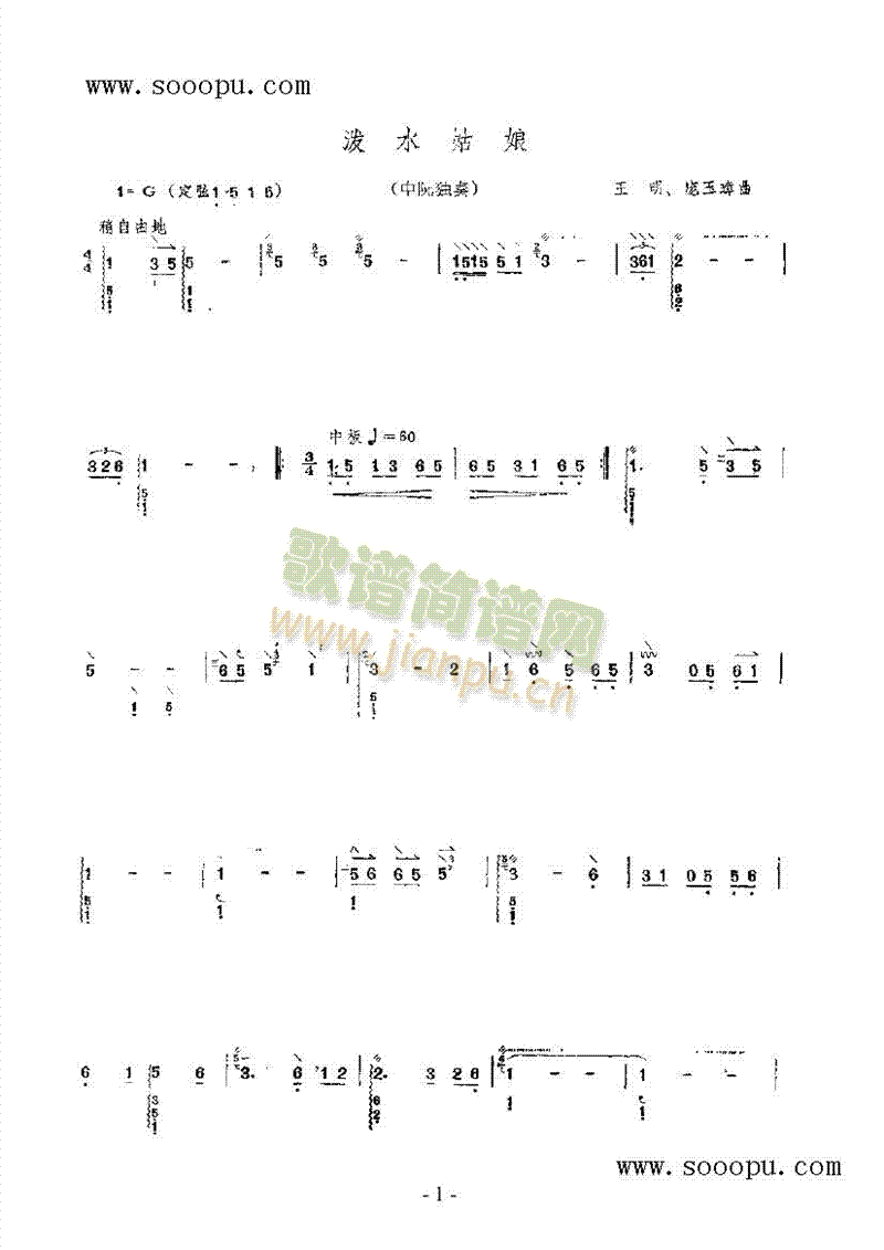 [其他乐谱]引水上山坡 民乐类 阮 王仲丙