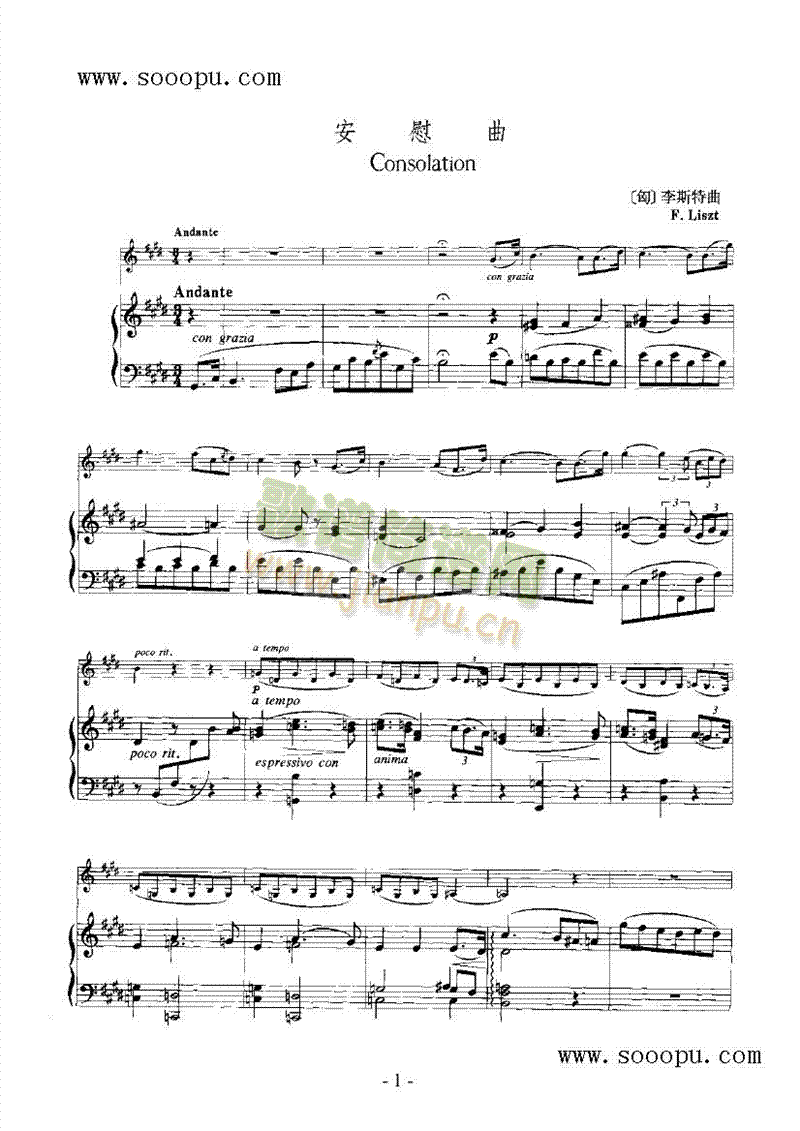 [其他乐谱]安慰-钢伴谱 弦乐类 小提琴 李斯特
