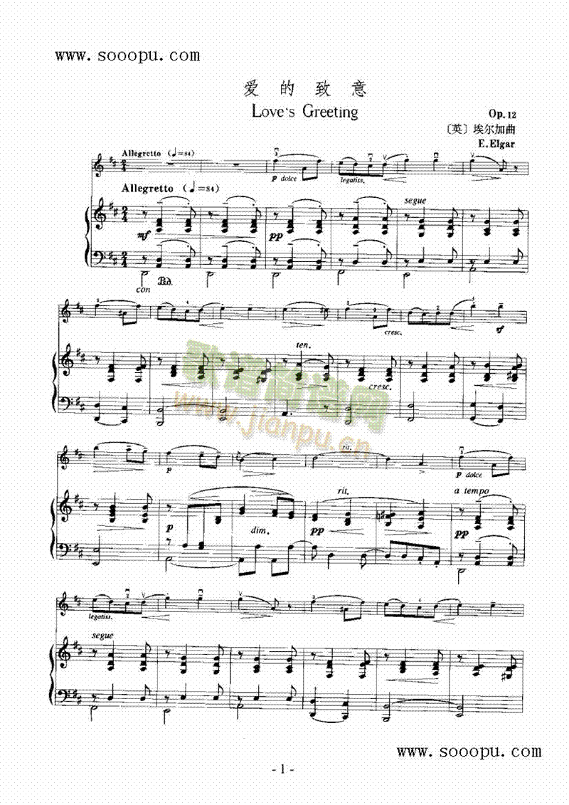 [其他乐谱]爱的致意-钢伴谱 弦乐类 小提琴 艾尔加