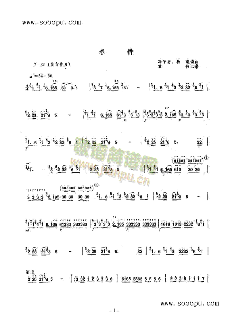 [其他乐谱]春耕 民乐类 竹笛 冯子存