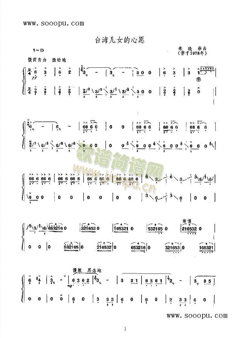 [其他乐谱]台湾儿女的心愿 民乐类 古筝 朱晓谷
