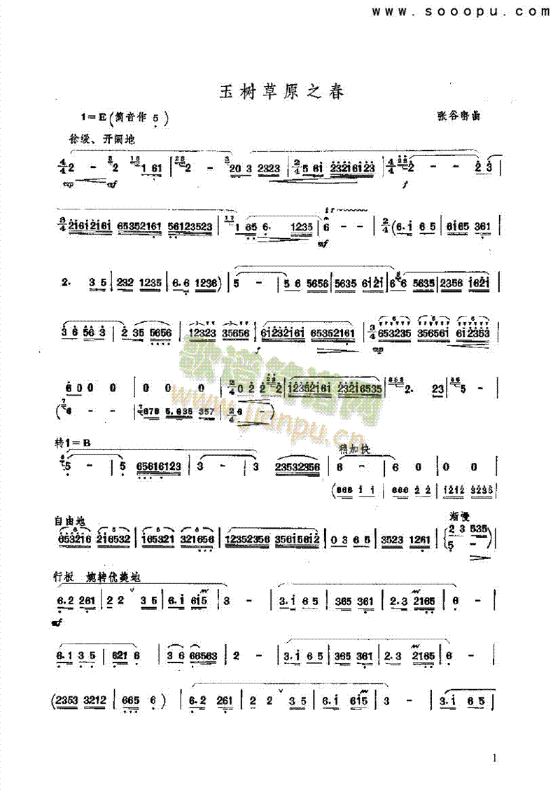 [其他乐谱]玉树草原之春 民乐类 竹笛 张谷密曲